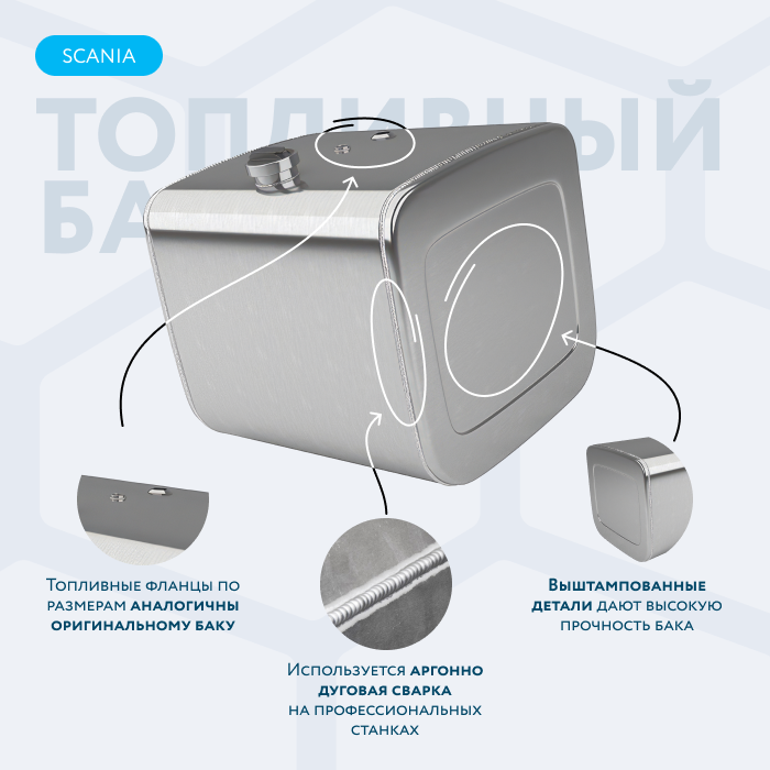 Алюминиевый бак не подвержен коррозии, что делает его более долговечным, а так же сбережет вашу топливную систему. Бак из алюминия в два раза легче стального бака, хотя он и изготовлен из листа увеличенной толщины в 2,5 мм. В конструкции предусмотрены цельные перегородки, которые проварены по периметру. Баки из алюминия так же оснащены заливной горловиной с самозапираемым непроливаемым клапаном (который становится барьером для разлива топлива, а так же становится защитой от попадания мусора в бак при открытой крышке) . Кроме того, однозначно что алюминиевый бак выглядит намного привлекательнее и дороже - где бак в том числе становиться и элементом тюнинга автомобиля. На алюминиеввые баки действует увеличенная гарантия - 36 месяцев.